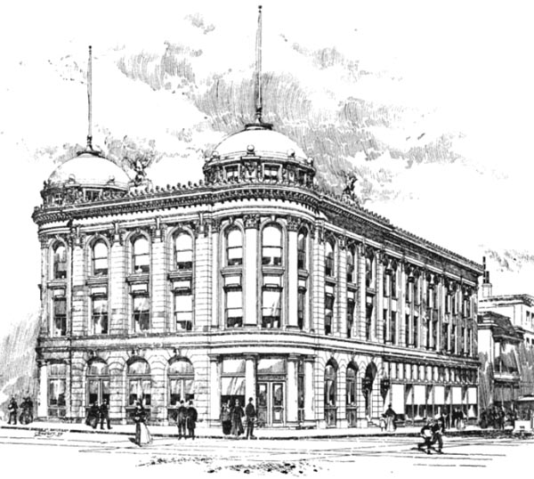The building's original appearance, in a presentation render from architect Issac Taylor's firm, presented at the Annual Exhhibition of the Saint Louis Architectural Club, 1899.